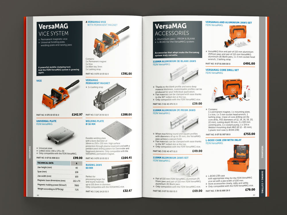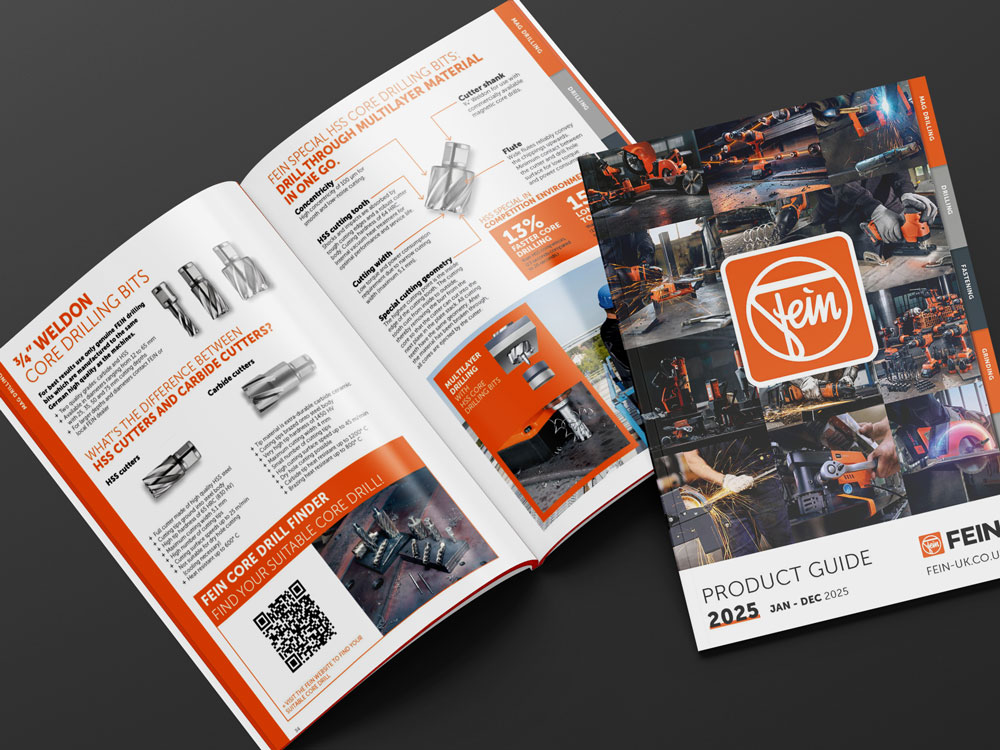 We were commissioned with designing the 2025 FEIN Power Tools Product Guide, showcasing the full range of FEIN tools, including all new product additions. To enhance usability, the guide features a tabbed index for easy navigation, helping users quickly find the tools and technical specifications they need.