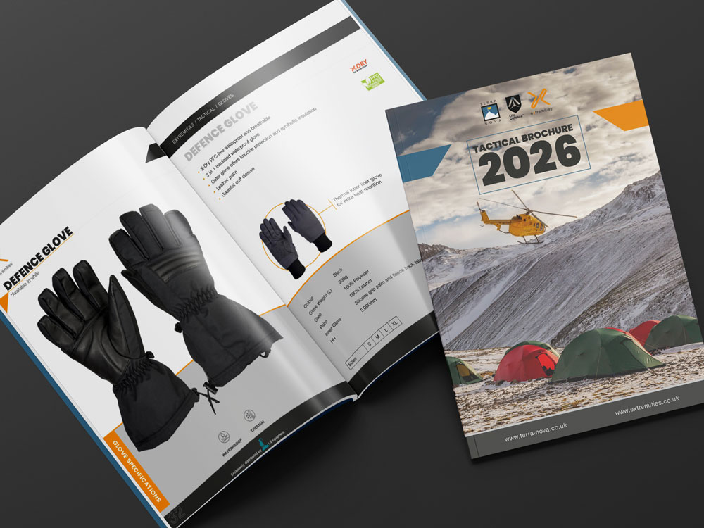 We were tasked with creating a A4 brochure showcasing the full range of Tactical products for service personnel. The design needed to balance impactful visuals with essential technical data, ensuring that every product’s key features and benefits were clearly communicated. This dual-branded brochure, representing both Terra Nova and Extremities, was crafted to be both visually engaging and highly informative, providing service personnel with the details they need at a glance.